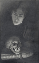 Self-portrait With A Skull - paper, pencil