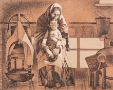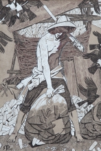 Looking Narrowly - mixed media, sanguine, pastel, sauce, paper