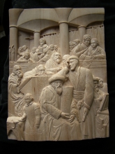 Judgement Day - pear tree, high relief by Rusinov Vladimir - wood carving.