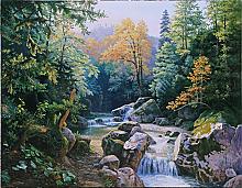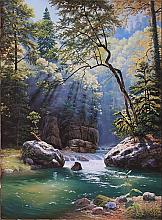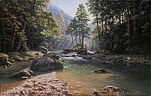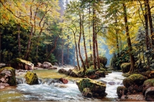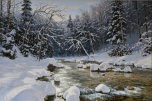 Spring Stroll Along Silver Mezmayka River - oil, canvas
