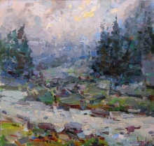 Rainy Day in Uzunkol - oil, canvas on hardboard