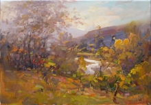 Autumn Evening On The Shoes Of Podkumok - oil, canvas on hardboard