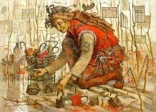 Key-keeper Matching The Key To The Lock - oil, canvas