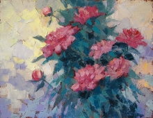 Irises At Sunset - oil, canvas