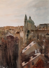 Red Clay. Fog In The Mountains - oil, fiberboard, canvas