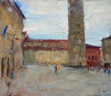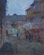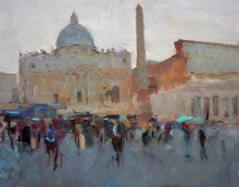 Saint Peters Cathedral. Drizzling - oil, cardboard