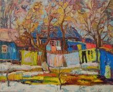 The Rain Is Falling On The Roofs, On the Leaves ! - oil, canvas