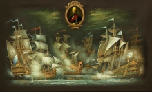 Glory To Admiral Ushakov - panel, Kholui lacquer painting technique