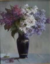 Lilacs In A Clay Jar - oil, canvas, dammar varnish
