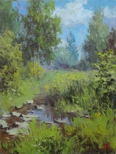 Landscape With A Brook - oil, canvas