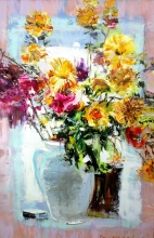 Autumnal Still Life Chrysanthemums - oil, canvas
