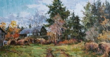 The Village Of Zaluchie - oil, canvas
