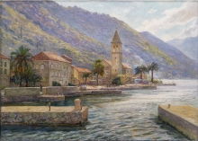 Evening Embankment In Stoliv. Montenegro - oil, canvas