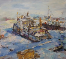 Trailer In The Ice On The Volga, Kazan - oil, canvas