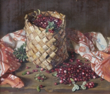 Still Life With Fruit On The Red Velvet - oil, canvas