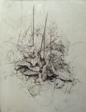 Plantago And Wild Strawberry Leaves - pencil, paper