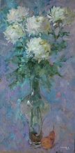 White Chrysanthemums - oil, canvas