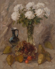 Chrysanthemums And Pears - oil, canvas