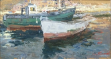 In A Roadstead - oil on fireboard
