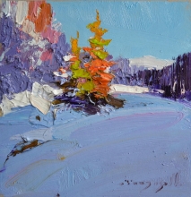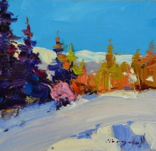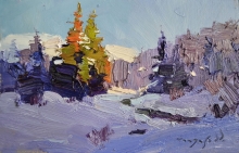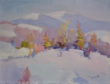 Snow In The Mountains - oil, canvas, rough canvas