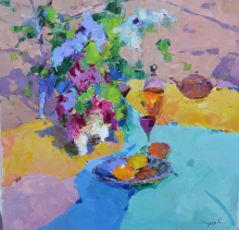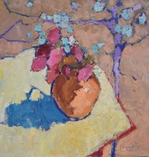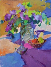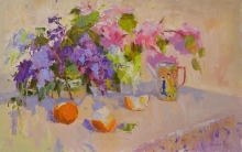 Lilac And Sakura With Oranges - oil, canvas