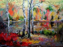 Birches - oil, canvas, palette-knife