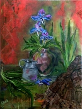 Still Life With Irises And A Shawl - oil, canvas