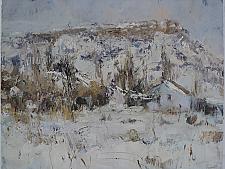 Village In The Snow - oil, canvas