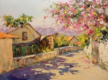 Blossoming Street - oil, canvas