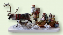 Santa With Deer And Sleigh - Bogorodskoe wood carving
