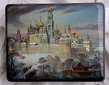 The Trinity-Sergiev Lavra - a box, Fedoskino lacquer painting technique