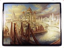 Kremlin Embankment - a box, Fedoskino lacquer painting technique
