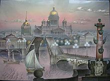 Bank Bridge In Winter, Saint Petersburg - a box, Fedoskino lacquer painting technique